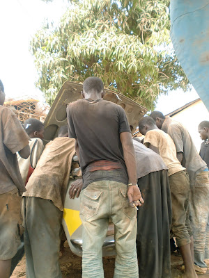 for PC Senegal) helped me find a taxi for Guinea that would leave the next day at 7am and helped me transfer my bags. I had no idea where I was, if this was a good idea, where I would sleep- I was totally at the mercy of the Peuls. Which, if you have to be at the mercy of a subset of strangers, I guess this is where my luck comes in. The man then told me to take my money, leave ALL my bags in the taxi, and we walked about two blocks away to the gendarmerie where he asked if I could spend the night, thinking it would be safer/more comfortable than on the ground next to the taxi. Again, leap of faith leaving the bags- but what can you do? The gendarme let me use his hole in the ground to shower, and my limited Pular got me a towel and water from a nice lady. The next morning I showed up at the taxi to find the greatest group of boys ever- all young Guinean merchants working in Dakar (Senegal). One started off by buying a giant bowl of bouille (pounded rice in sugar) for everyone in our car to share. We started joking around in Pular, sharing a meal- I teared up because this was my first interaction with Guineans and made me so anxious